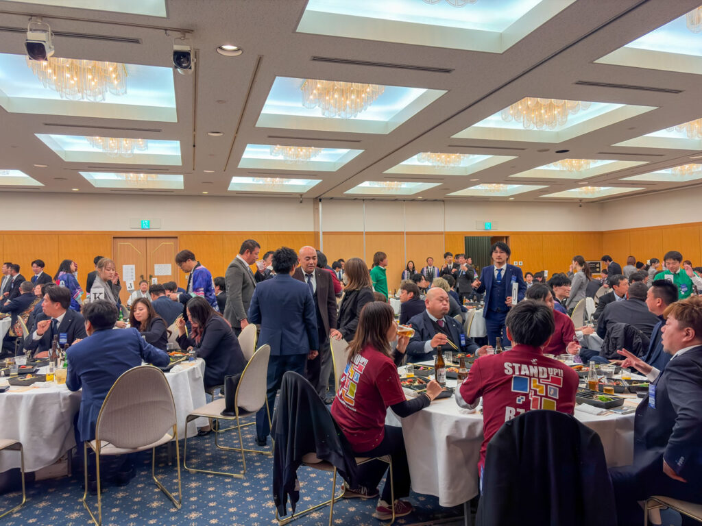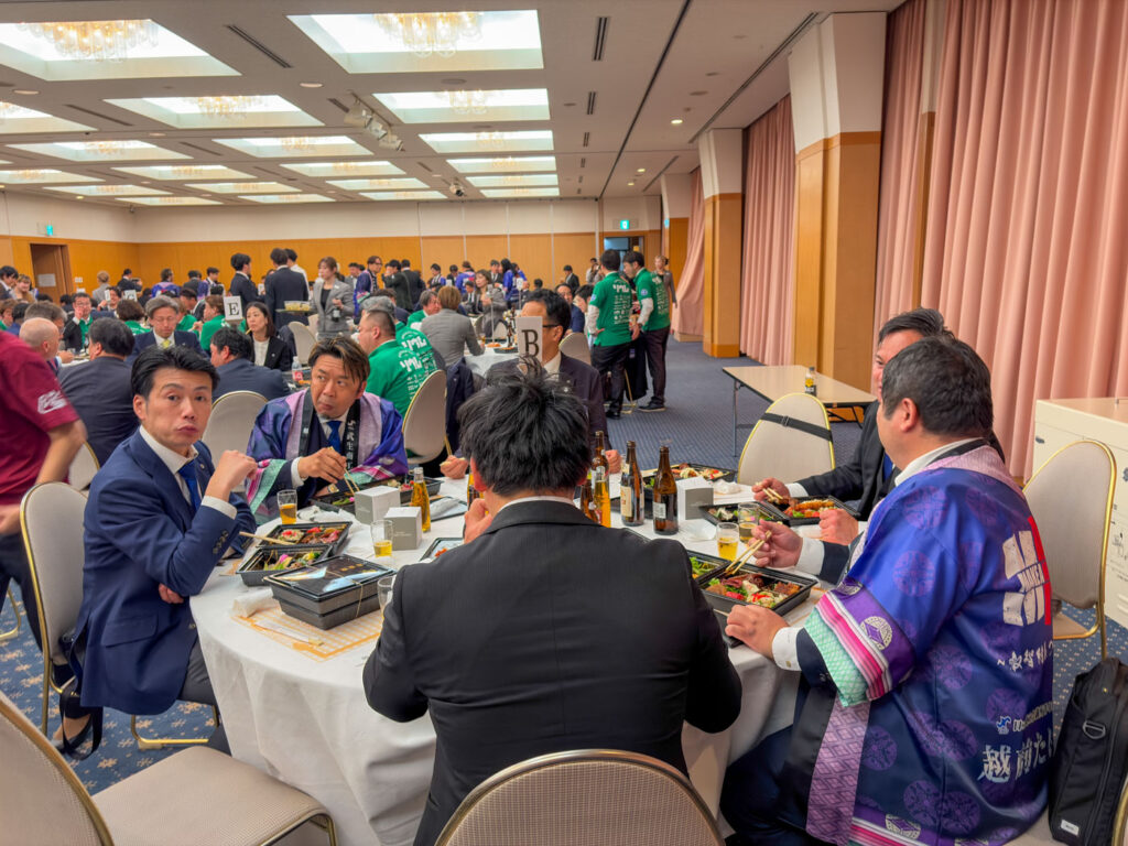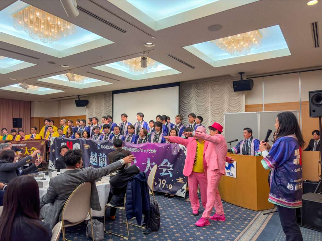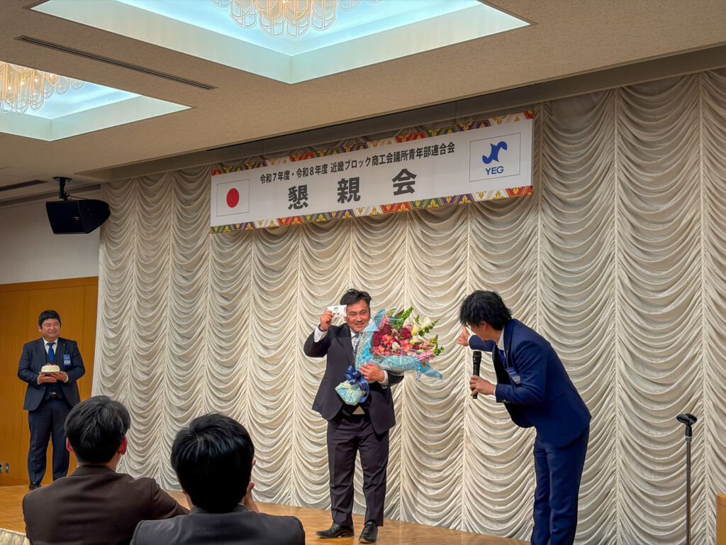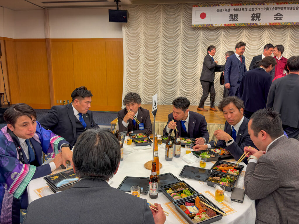 懇親会の場においては、越前たけふ大会のPRを全力でPRしました!令和8年度は、いよいよ第44回近畿ブロック大会越前たけふ大会が、越前市で開催されます。武生YEGは主管YEGとして、会員一丸となって大会準備に取り組んでまいります!